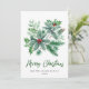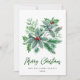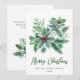 Cartão de Natal de Galho de Azevinho Festivo com Bagas Saudação de Natal.