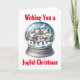 Este cartão de Natal personalizável apresenta uma garrafa de neve com pessoas a divertir-se na neve.