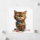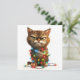 Mostrando um gato tabby determinado em meio ao caos das festas, envolto em luzes brilhantes e coloridas. Um cartão para qualquer pessoa que já se sentiu sobrecarregada durante a temporada!