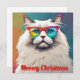 Celebre as festas de Natal com estilo! Este cartão de Natal de gato fofo apresenta um gato de desenho animado ragdoll usando óculos coloridos e legais. Perfeito para amantes de gatos que buscam um toque moderno e único em seus cumprimentos festivos. As cores vivas e o design ousado do gato tornam-no uma escolha de destaque. Não perca – faça uma declaração e compre este adorável e legal cartão de Natal de gato agora!