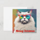 Celebre as festas de Natal com estilo! Este cartão de Natal de gato fofo apresenta um gato de desenho animado ragdoll usando óculos coloridos e descolados. Perfeito para os amantes de gatos que buscam um toque moderno e único em seus cumprimentos festivos. As cores vivas e o design ousado do gato tornam-no uma escolha de destaque. Não perca a oportunidade – faça uma declaração e compre este adorável e descolado cartão de Natal de gato agora!