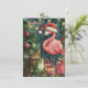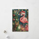 Um cartão único e fofo para o Natal e saudações de fim de ano, apresentando um flamingo rosa usando um chapéu de Papai Noel, junto com um gato malhado e um sapo, cercados por presentes de Natal, árvores de Natal e luzes de Natal. O flamingo rosa dá a ele um clima tropical. Altere ou exclua o texto na frente. Você pode adicionar sua própria personalização!