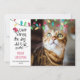 Cartão de Natal humorístico com foto de gato, apresentando uma foto do seu gato com a frase "Querido Papai Noel, o cachorro fez isso. (sério)" e assinado pelo seu gato. A saudação MEOWY CHRISTMAS é editável. O lado de trás tem um padrão festivo de pegadas de gato em cores natalinas brilhantes.