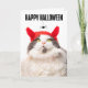 Cartão De Festividades Gato Feliz de Halloween em Figurino do Diabo com A