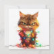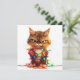 Este adorável gato malhado, relutantemente cercado por luzes de Natal brilhantes, traz humor e charme para os seus cumprimentos de Natal. Ideal para entusiastas de felinos com senso de humor.