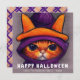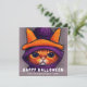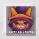 Cartão De Festividades Gato Laranja com Chapéu de Bruxa Roxo Feliz Hallow