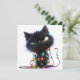 Cartão De Festividades Gato Preto Atitude Envolvido em Luzes Festivas
