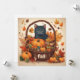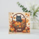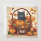 Cartão De Festividades Gato Preto com Cesta de Colheita de Outono Marrom