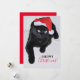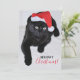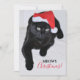 Cartão De Festividades Gato Preto com o Chapéu Vermelho de Papai Noel
