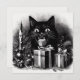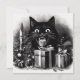 Cartão De Festividades Gato Preto com Presentes de Natal