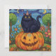 Cartão De Festividades Gato Preto de Halloween Fofo e Abóbora