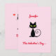 Mostra um gato preto legal com um nome, "Neste Dia dos Namorados," e "Seja Meu". O nome e o texto são personalizáveis. Há também corações vermelhos.