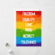 Orgulho LGBT - design de Bandeiras Modernas do Arco-Íris com as palavras "LIBERDADE", "EQUALIDADE", "AMOR", "ORGULHO", "RESPEITO" e "TOLERÂNCIA". Você pode alterar a cor e o estilo do texto, substituir palavras ou excluir o texto de um design de imagem apenas. Palavras-chave relacionadas: colorida, lgbt, lgbtq, lgbtqi, lgbtqia, lgbtqia+, orgulho, gay, lésbica, rainha, bissexual, transgênero, trans, bi, pansexual, assexual.