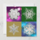 Flocos de neve de geometria de cristal de gelo prateado em um fundo de várias cores para seus cartões de feriado. A beleza do cristal da natureza é apropriada para todas as ocasiões de feriado, seja Natal, Solstício de Inverno, Ano Novo ou qualquer outra coisa. Espalhe beleza nesta temporada de festas com esses cartões de felicitações de floco de neve. Imagens de fotografias vintage.