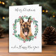 Envie cartões de natal nesta temporada de festas com este elegante German shepherd de Feliz Natal em um cartão de design de coroa, e compaixão. Este cartão de german shepherd apresenta um cão aquarela numa coroa verde e vermelha com sagrado e bagas. Personalizar com o nome da família de mensagens. Este cartão de natal de german shepherd será um favorito entre amantes de german shepherd, amantes de cachorros e amantes de os animais. Visite nossa coleção para combinar cartões de natal de german shepherd, decoração doméstica e presentes. COPYRIGHT © 2020 Judy Burrows, Black Dog Art - Todos os Direitos Reservados.German shepherd Feliz Natal Trendy Dog Holiday Card