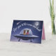 A dog Valentine's Day card featuring a German Shepherd couple in a flying saucer going to the moon.