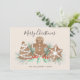 This Gingerbread Cookies Christmas Holiday Card is decorated with watercolor cookies, festive greenery, and red berries on a cream background. It says Merry Christmas in stylish script typography and has a gingerbread cookie pattern on the back.
