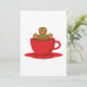 Cartão De Festividades Gingerbread Man Relaxando Na Copa Vermelha De Choc