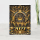 This dazzling Art Deco design celebrates the arrival of 2027 with a bold black and gold palette and a lively jazz-inspired theme. A radiant midnight clock anchors the composition, framed by sweeping geometric sunbursts and architectural shapes reminiscent of a roaring twenties ballroom. Saxophones, a trumpet, vintage microphones, and a grand piano keyboard surround silhouetted musicians, creating the energy of a live New Year’s Eve performance. Sparkling champagne coupes and glowing gold accents enhance the festive atmosphere. The dramatic symmetry and metallic tones give the artwork a luxurious, vintage feel perfect for ringing in the new year with music, glamour, and style.