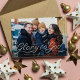 Com um roteiro de tendências, este cartão de Natal com tema fotoreligioso é uma forma perfeita de enviar cartões de natal. Este design de cartão de feriado horizontal apresenta uma foto de solteiro e um script "Glory to God" junto com seu texto personalizado. O dorso é um vermelho festivo com um padrão de pontos brancos. Este design original de Lea Delaveris Design faz parte da coleção de scripts de fita onde você pode encontrar mais designs e mensagens de feriados. Este Cartões de foto de Natal também está disponível como download digital.