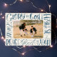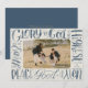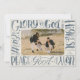 Um cartão de foto de feriado religioso apresenta letreiramento original de pincel aquarela de "Glória a Deus nas alturas e paz na terra, boa vontade para com os homens".