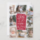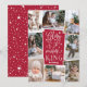Um belo cartão com fotos de feriado religioso baseado em tipografia mostra oito das suas fotos familiares favoritas organizadas em um layout de colagem. A "Glória ao rei recém-nascido" aparece no centro em tipografia branca, escrita à mão sobre fundo vermelho de morango, pontilhado com estrelas festivas. Personalize com seu nome de família embaixo.