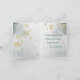 Shimmering gold snowflakes against a frozen icy background is the cover of this card with the same graphics inside and on the back. Customize the writing and remove it for blank cards.