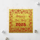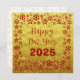Square wish card Happy New Year written in English in red font with a lot of golden stars on a golden background - editable text and background