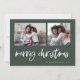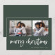 Este simples cartão de Natal verde e branco para a família apresenta uma tipografia moderna e casual que diz "Feliz Natal", com uma grade de duas fotos na frente para um design de Natal moderno e minimalista.