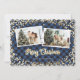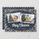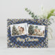 Cartão de Natal com fotografia única de xadrez azul de búfalo, com um falso título de caligrafia em folha de ouro, neve dourada, estrelas e luzes mágicas de Natal brilhantes e duas fotografias contra um fundo de xadrez de búfalos preto e azul. Personalize facilmente estes cartões de Natal com fotos cintilantes com as suas fotografias e um nome de família.