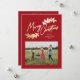 Um roteiro elegante, vermelho e galhos de folha de ouro 2 fotos Cartão de Natal Feliz com uma fotografia simples. Clique no botão editar para personalizar este design.