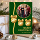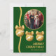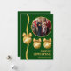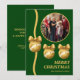 Share warm holiday wishes with this classic green and gold Christmas card featuring ornate metallic ornaments and your favorite family photo. The rich green tones and luxe gold accents create a festive, traditional design that stands out. Easily customize names and message to create a beautiful keepsake greeting.