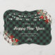 Cartão De Festividades Green Plaid Botanical String Lights New Year Card