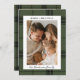 Cartão De Festividades Green Plaid Elegant Custom Two Photo Christmas
