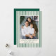 Compartilhe desejos de Natal calorosos com esta Moderna Faixa Verde Feliz Cartão com fotos de Natal Feliz. Um fundo creme com listras verdes elegantes enquadra sua foto de família, com "Feliz Natal" em letras clássicas de serifa e seu nome de família em um roteiro escrito à mão. O verso oferece espaço para uma foto adicional e sua mensagem de feriado personalizada, criando um na moda e uma maneira sincera de espalhar a alegria de Natal.