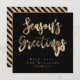 Tipografia de saudações da temporada Imagem de preto elegante e Dourado, Texto de Folha de Ouro Falso e Stripes em Fundo Preto, Script Moderno, Cartão de Natal Chic