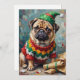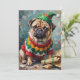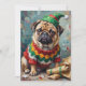 Cartão De Festividades Grumpy Pug Dog in Elf Hat Funny Christmas Art
