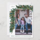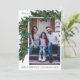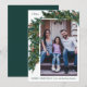 Guirlanda rústica verde com bagas e cartão de foto azul escuro no verso cartão de Natal.