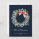 Feliz Natal! Envie saudações de Natal para familiares e amigos com este moderno cartão de Natal com grinalda em aquarela personalizado Grinalda de aquarela de sempre-viva e frutos de azevinho. Este cartão apresenta uma Grinalda de sempre-viva e frutos de azevinho em aquarela com pinhas entre eles, em um fundo azul escuro. Personalize este cartão de Natal adicionando o nome e o ano na frente e uma mensagem no verso. Escolha entre uma ampla variedade de tipos de papel e tamanhos de cartão diferentes. Sinta-se à vontade para navegar por itens correspondentes - disponíveis na minha loja.