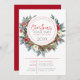 Colorido modelo de convite para jantar de Natal personalizável com guirlanda de flores de Natal e chifres de veado marrons.