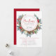 Modelo de convite para jantar de Natal personalizável com guirlanda de flores de Natal coloridas e galhadas de veado marrons.