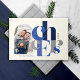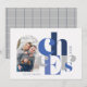 Esses cartões de saudação de fotos de feriado de 7" x 5" apresentam a saudação, "Saúde", em grande azul e cinzas, em um fundo branco de chiffon. Personalize com sua foto, nome e ano favoritos.