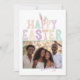 Fun, modern Happy Easter greeting cards personalized with your photo and name. Created using hand painted bunny ears and hand drawn typography overlaid with fun spring patterns. Original art by Leslie Larson.