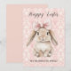 Cartão De Festividades Happy Easter Bunny with Bow on Pink Damask