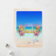 The design on this tropical-themed Easter card features a brightly colored "Happy Easter" text adorned with pastel Easter eggs, ribbons, and spring flowers elegantly floating above a serene turquoise ocean. The style is whimsical and soft creating a dreamlike atmosphere! The back text reads "Sending warm wishes from Florida for a joyous Easter!" The text may be edited for personalization at no additional charge. Please browse our complete collection of tropical-themed Easter cards, gifts, and home decor. Special design requests accepted.