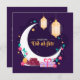 Personalizado Moderno Elegante roxo Eid al-Fitr Mubarak recebe cartões Que se caracteriza por uma grande crescente decorada com flores, lanternas e presentes. você pode criar cartões Eid Mubarak Eid Mubarak deseja celebrar Eid com seus entes queridos.