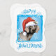 Celebrate the holiday season with a cute Weimaraner wearing a Santa hat amid snowflakes with the words, Happy Howlidays! Great for Weim-loving family and friends.