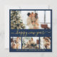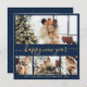 Cartão De Festividades Happy New Year Script Blue Gold 4 Photo Collage