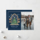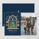 Envie desejos de férias encantadores com este cartão de Natal mágico temático de Harry Potter! Um lado do cartão apresenta uma bela ilustração de uma janela de vitral inspirada em Hogwarts, mostrando uma árvore de Natal decorada com luas, estrelas e varinhas. Velas flutuantes e os brasões das quatro casas (Grifinória, Corvinal, Lufa-Lufa e Sonserina) flanqueiam a janela, tudo contra um fundo azul-marinho profundo. Abaixo desta cena festiva, o texto personalizável permite o nome da família e os nomes individuais em uma elegante caligrafia. O outro lado do cartão é dedicado a uma foto horizontal preciosa da família, capturando um momento alegre de inverno, sobreposta com "DECK THE HALLS" em letras brancas clássicas. Este cartão combina perfeitamente a calidez das tradições de férias em família com o mundo encantador de Hogwarts!