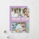 Whimsical and modern New Year's photo template card featuring a typography text that says "Hello, 2026" with 3 of your pictures. You can add another picture and a message on the back of the card. Lemon Wisteria color.
